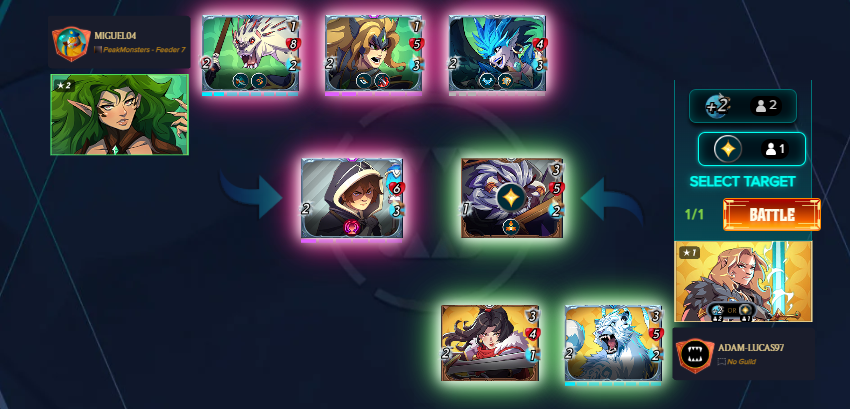 This battle is a good battle with 25 Mana only so it is one of challenging battles that needs some thinking and it is with a battle rule of Aim True as All units gain True Strike (attacks will never miss) so I have chosen some good cards to start the battle with.