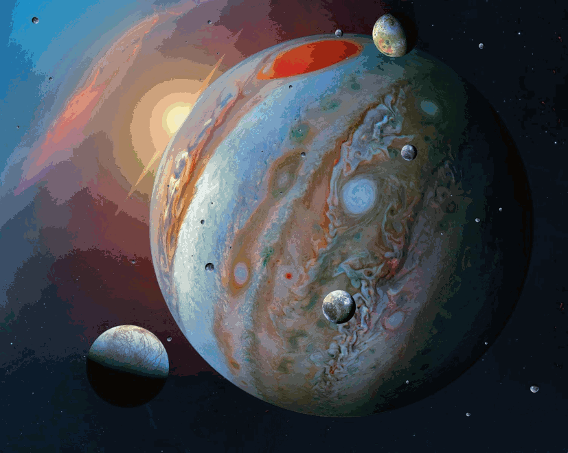 The image of Jupiter and its Galilean moons: ParallelVision on Pixabay