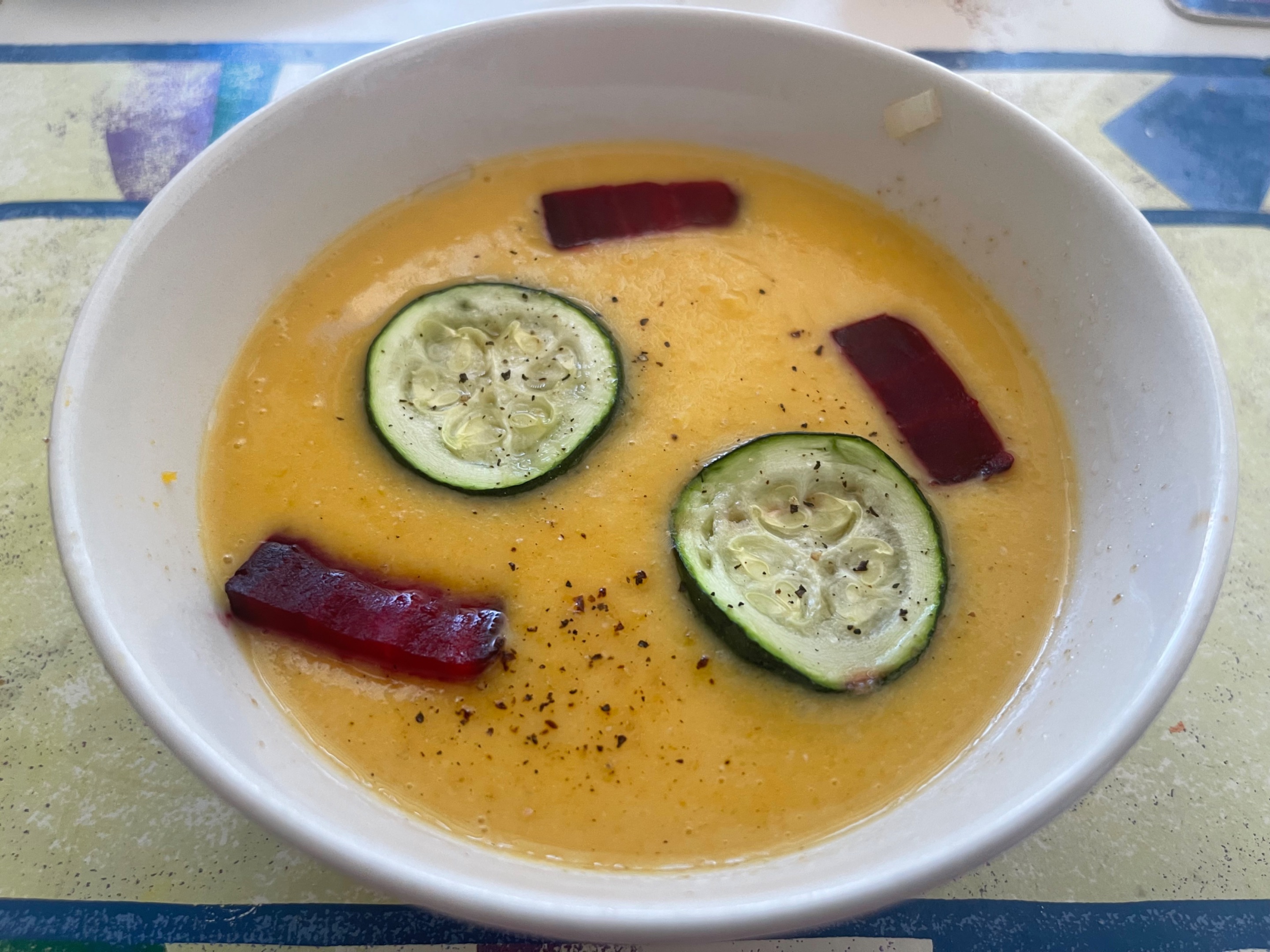 - At the end I decided to put some of my beets and zucchini on top to make it look more colorful.