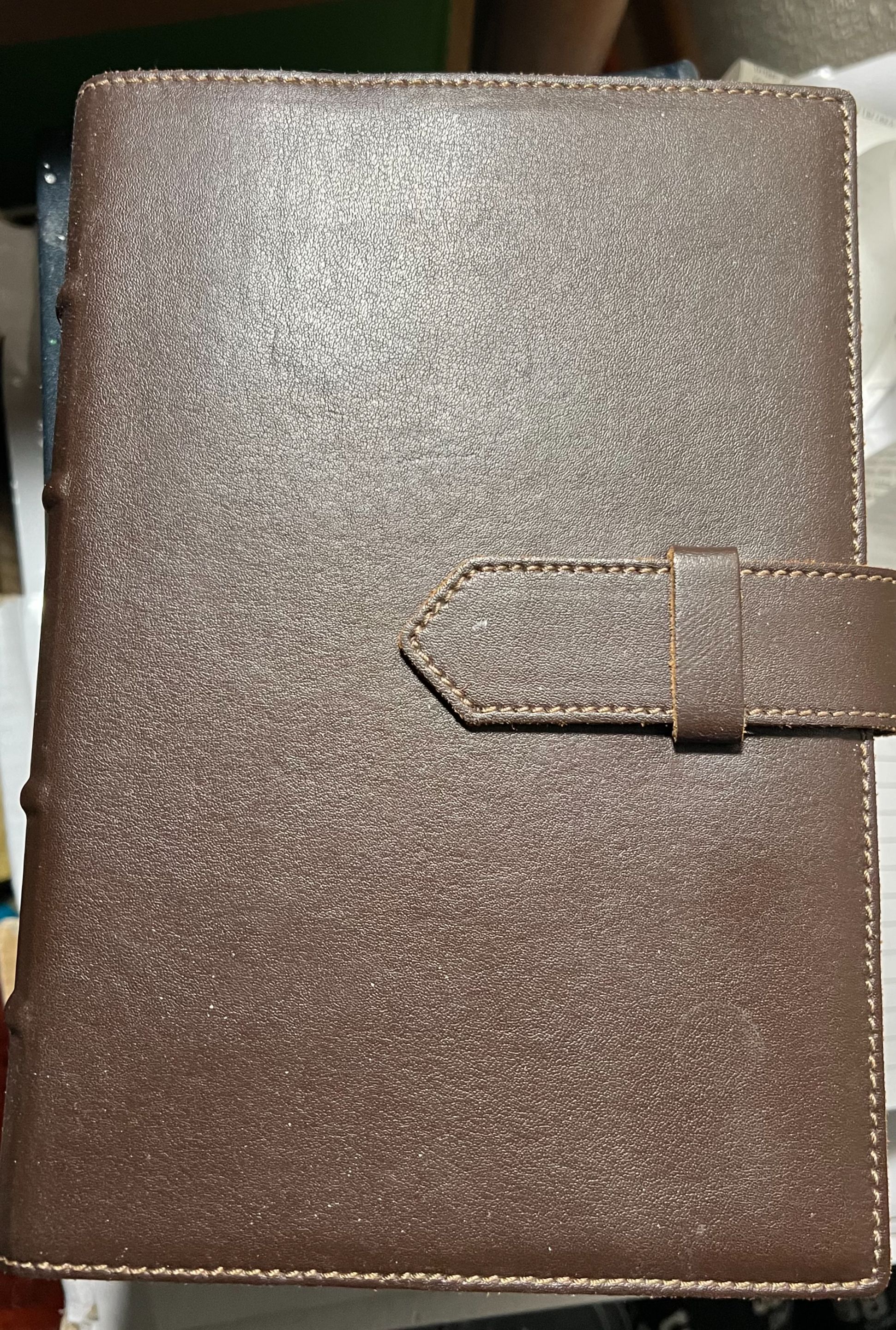 This journal is a smooth 'leather' cover with a little clasp. The actual book inside is heavy with thick solid lined pages. The clasp helps the journal give off 'Idea book' vibes.