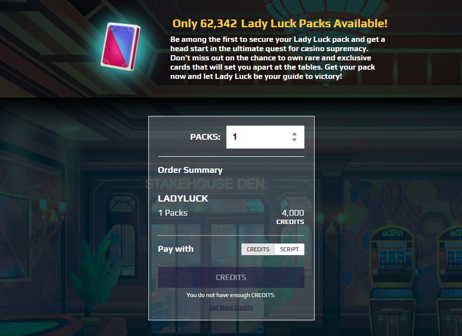 Hello everyone — hope you’re doing well. I’m excited to walk you through the tokenomics of the “Lady Luck Packs” from Stakehouse Den, and why they present a compelling angle in the ever-evolving crypto-gaming and NFT ecosystem.