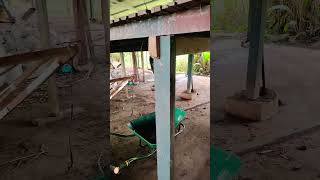 We took out the rotten wood and replaced it with the better one also the right side of the chicken farm flooring is complete.