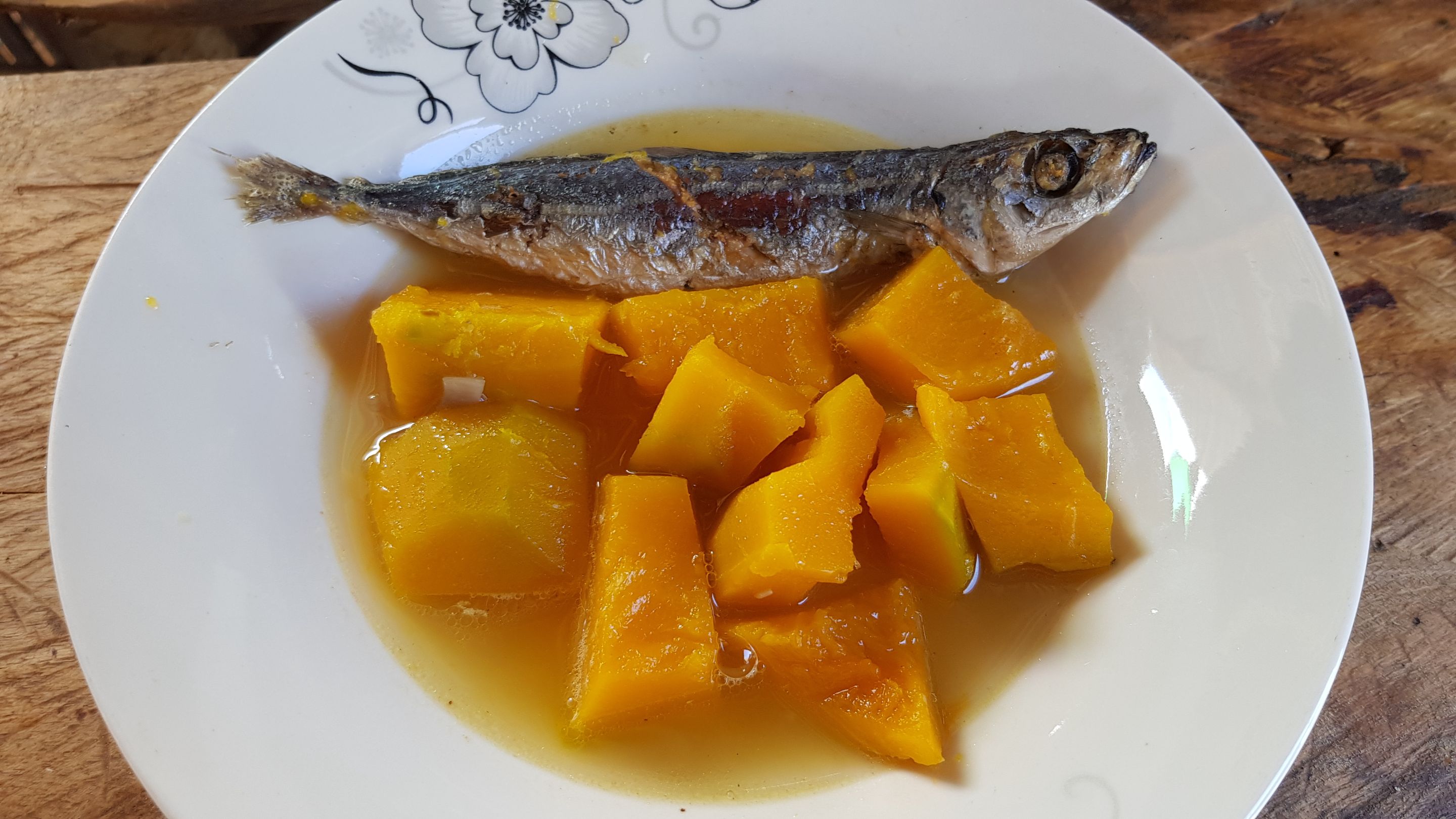 The simplicity of the dishes of Ilocanos/Ilokanos is amazing. Most of the time their dishes consist of only 2-3 main ingredients (excluding condiments) and they are still very tasty and most of all healthy. That being said, this dish consists of only two main ingredients, squash/pumpkin and fried Blue Scad Mackerel, all other ingredients ingredients are salt and cooking oil.
