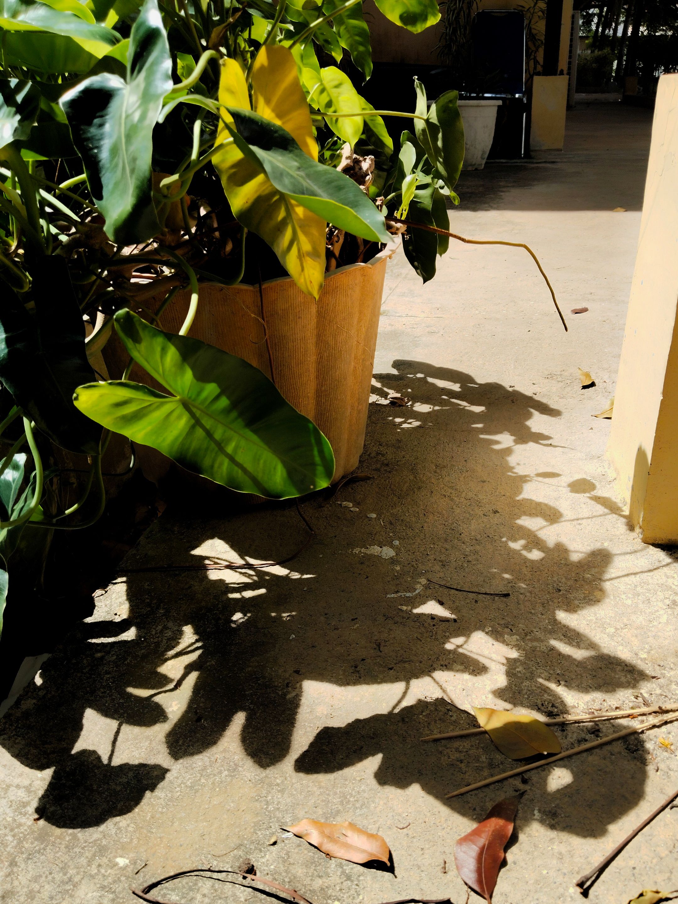 The shadows, consisting of a water faucet, decorative flowers, and a support pillar, are clearly visible on the floor and walls of the building at that location. I will choose one entry for the contest.