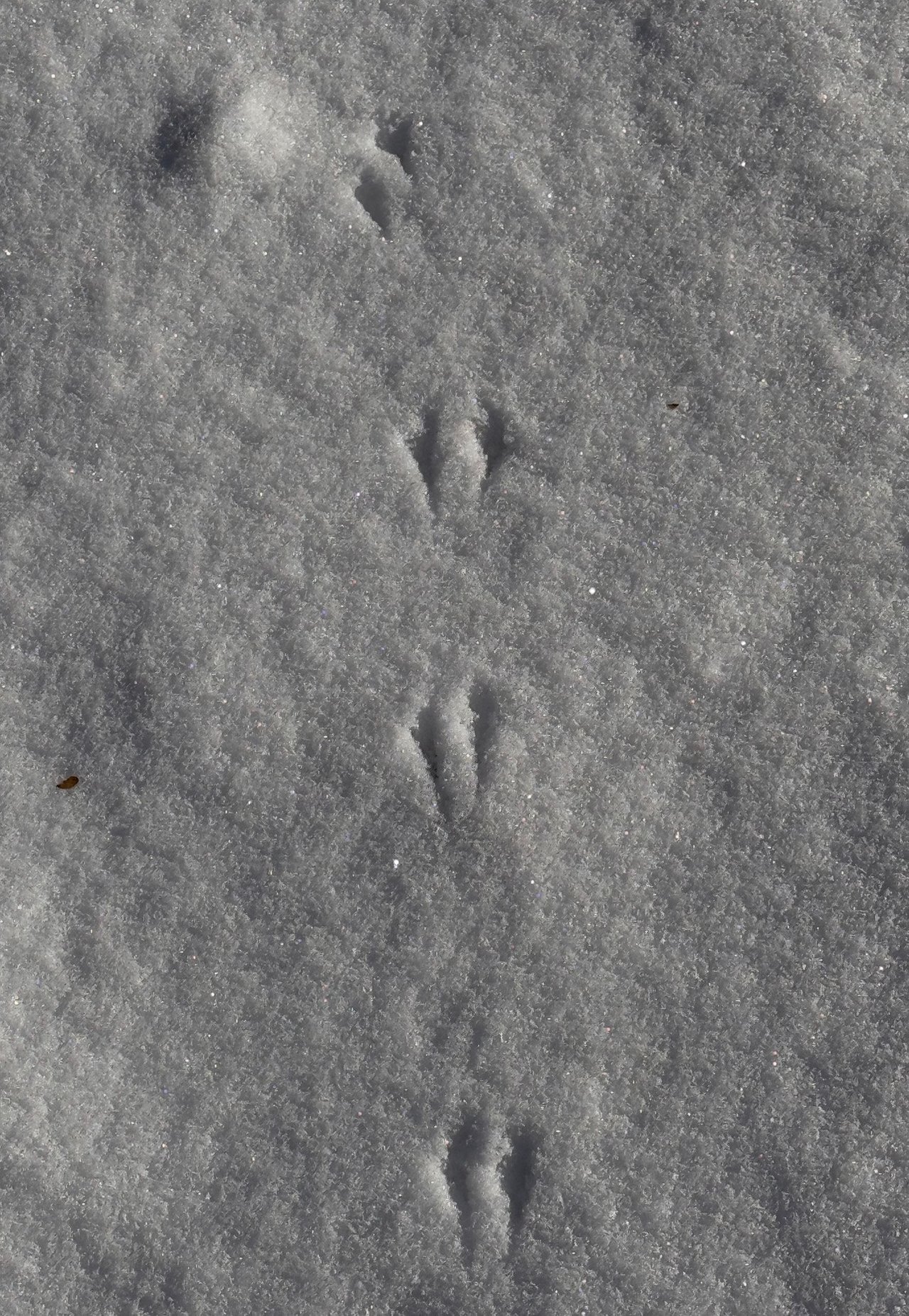 In the snow though, you get a different perspective of critters. Take that first picture for instance. So delicate looking are the birdie prints. Yet this fellow would not leave such dainty prints in the snow!