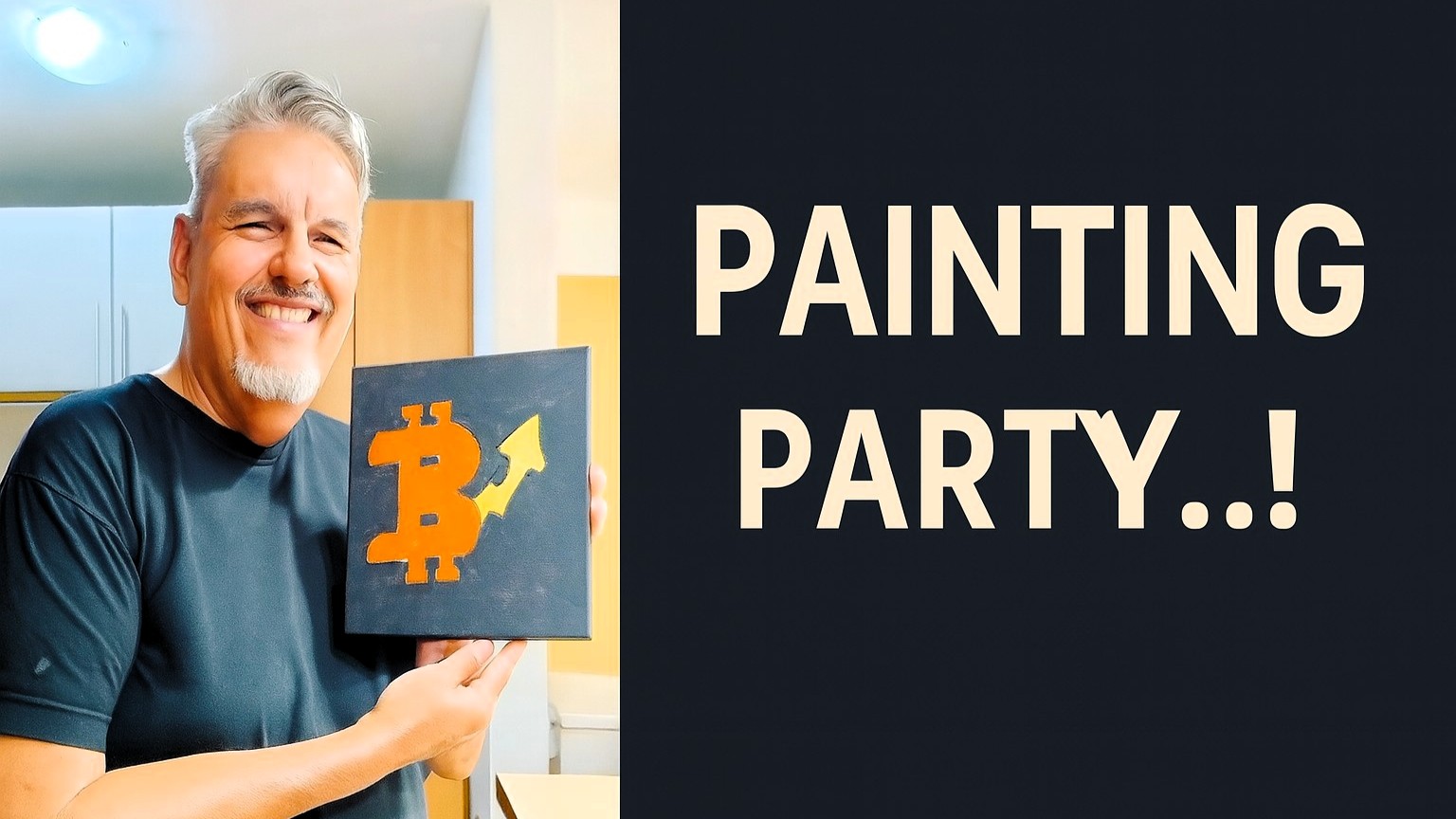 Another hallmark of these gatherings is the sharing of food and drink. Even better when guests pitch in somehow. I didn’t ask him too many questions, but he also went out and bought snacks and liquor to spice up the evening. The activity unfolds more or less like this: when the group isn’t made up of seasoned painters, the artist—in our case @stow01—guides everyone through the object they’ll be painting. It can be something he suggests (he offered four options: a rainbow, a cactus, a flower, and a duck in a pond) or something proposed by the participants themselves. In our case, since we’re tied to the crypto world, we came up with the idea of painting the Bitcoin symbol with a yellow lightning bolt shooting upward—crypto slang for when the market takes off and the coin “goes to the moon.” So we each sketched out the design we’d later bring to life with color.