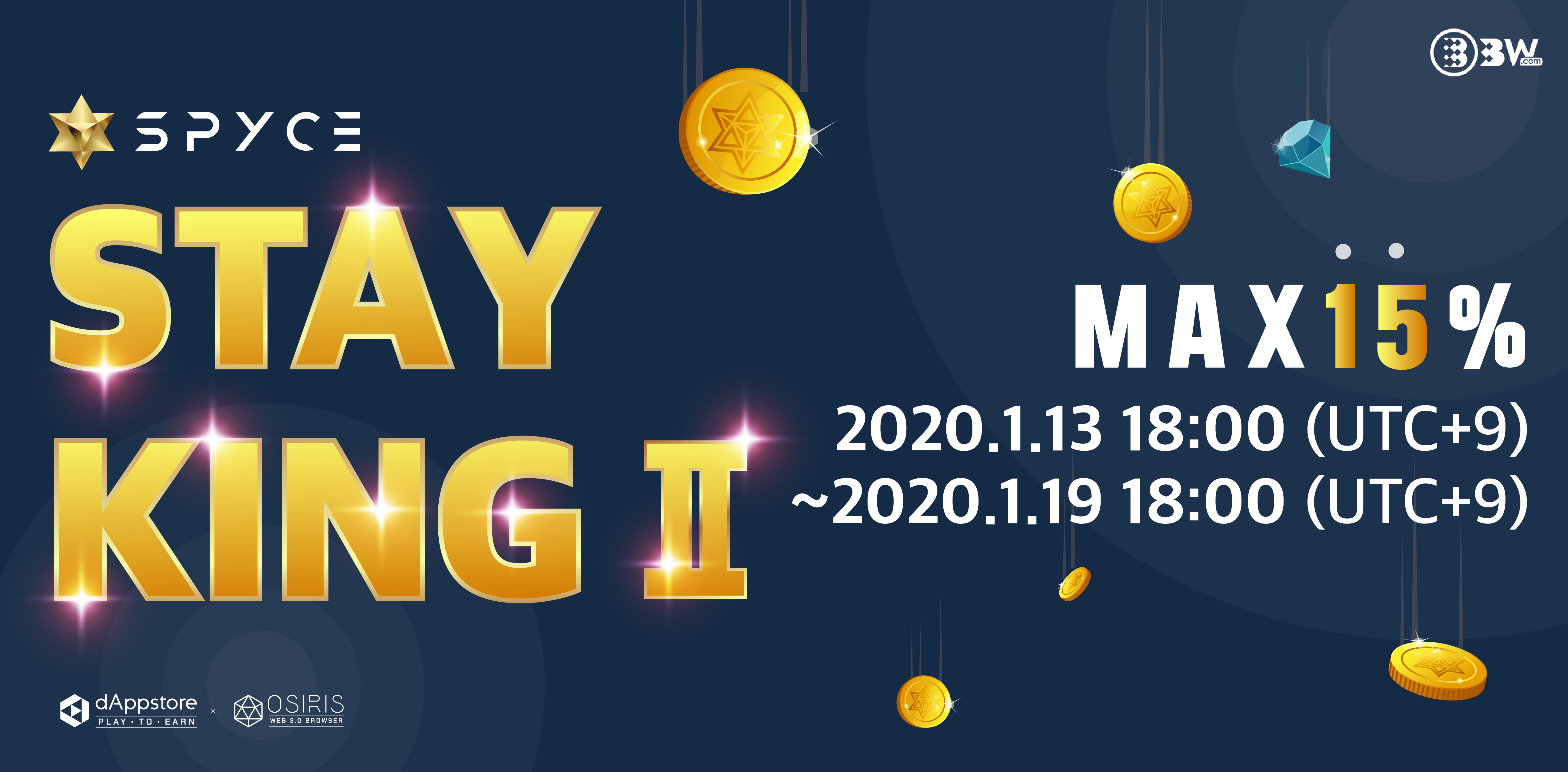 After receiving tremendous participation in Decenternet's first SPYCE "Stay King" event, we will be holding a SPYCE "Stay King II" event to provide additional benefits and rewards to long-term SPYCE holders who were not able to participate in the last event.