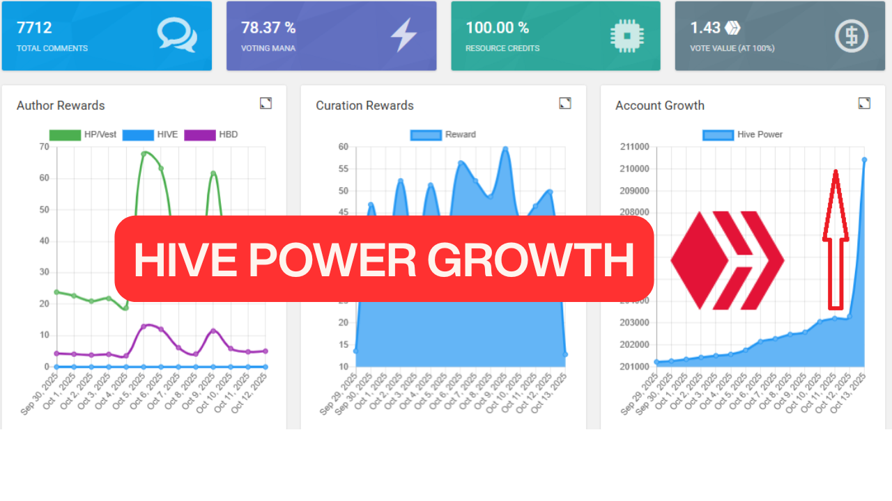 It bit hurts when we see HIVE trading below $0.20 cents and that is where I feel to accumulate as much as HIVE possible. I go to an extent to even swap my other crypto assets staking rewards for HIVE. As an example currently I am swaaping all my #COTI rewards for #HIVE. There’s also a plan to buy more $HIVE via P2P (Peer-to-Peer) trade, so let’s see if I can grab another 5K+ HIVE using fiat.At the moment, I’m not in favor of buying from exchanges — P2P remains my preferred choice, as it offers better flexibility and direct deals with other traders. Our Indian discord channel is the best soruce here to do the P2P trades. Ok this was a bit on HIVE GROWTH via power up and as an investment strategy. I also wanted to touch base up my curation rewards that is also adding up to my HP growth. There was a time when my curation rewards were just around 20+ $HIVE, but now with 210K+ HP in hand, the rewards are getting really interesting. They’ve reached the 55+ $HIVE mark, which is a great deal, isn’t it? How is your HIVE curation rewards looking like? Overall, I would say that during times when markets are not in our favor and we see the bears taking control, it’s actually a good time to focus on building, learning, and accumulating — rather than panicking or selling in fear. Build & #HODL on to your HIVE and do not panic SELL. Well this should be it for todays post on - "HIVE - Focus on HIVE POWER Growth - Next Target - 250K+ HP...".. Happy Investing & #HIVE to the mooon.... HIVE ON.... Cheers