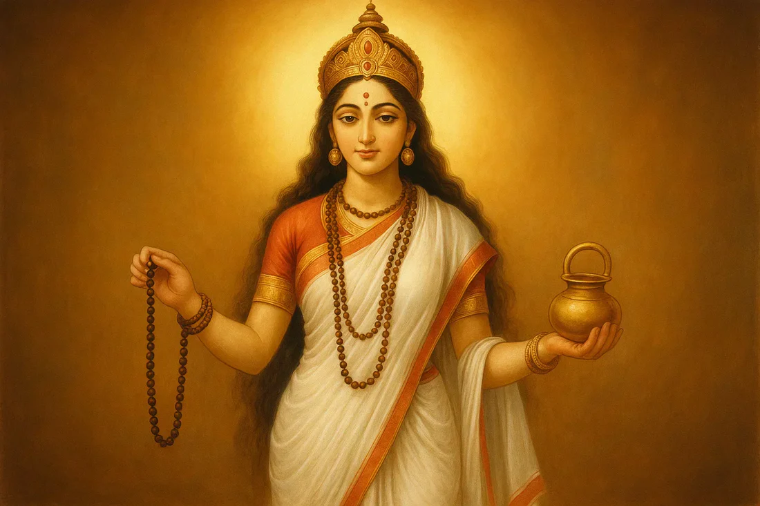 Brahmacharini Mata is the second form of Goddess Durga, celebrated on Day 2 of Navratri. This form represents self-control, austerity, penance, and the pursuit of divine knowledge. From a young age, she yearned to marry Lord Shiva, the Supreme God. To fulfill this desire, she embarked on a path of austerity. She has a white saree with an orange border in one hand, a japamala, and a kamandalu in the other hand. reminding us that true devotion means walking with courage even through the toughest paths. Initially, she survived by eating bilva leaves, and eventually, she completely abstained from food and water to devote herself entirely to worshiping Lord Shiva. Recognizing her dedication and years of penance, Lord Shiva was pleased and granted her wish to become his wife. We learn from her that Success is not an overnight phenomenon.