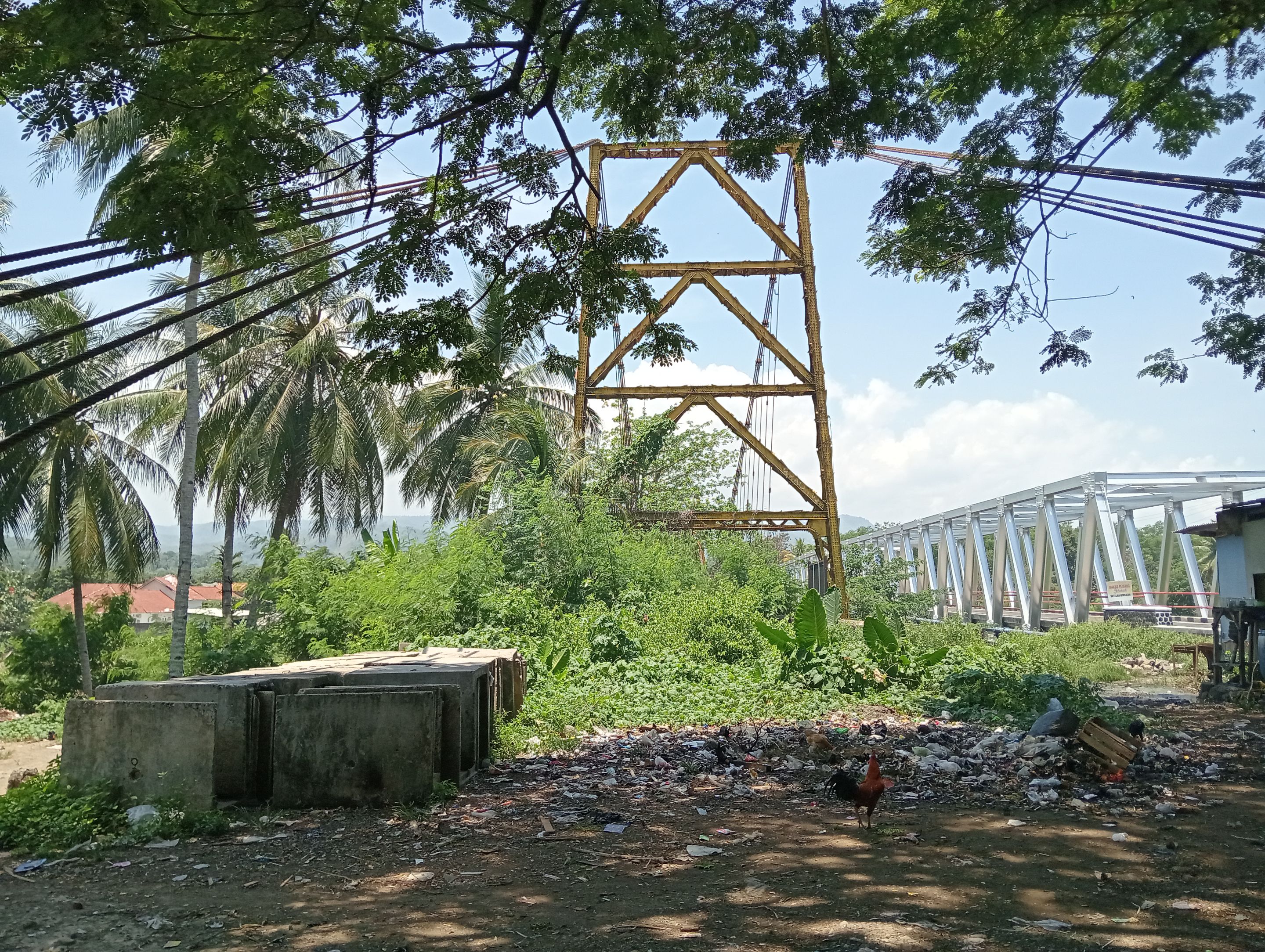 This abandoned Yellow Bridge was built by Dutch Government around 1923 with a suspension construction supported by iron slings at the end inserted into concrete Walls and river stones.