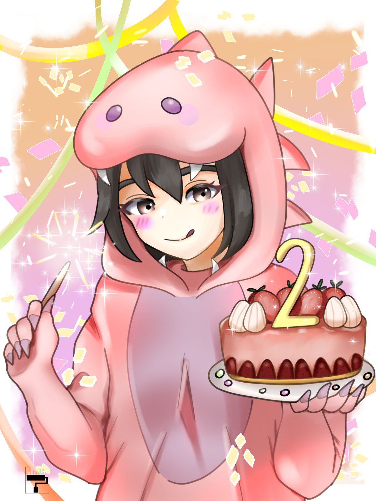 Next, I applied the base colors. Since strawberry cake is also pink, I used a darker shade to keep them apart. Putting an orange background is a nice complement to the pink shades. I manually drew the strawberries and icing, as well as the number 2 on top.