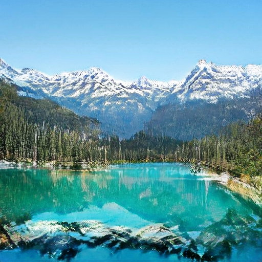 This is the resulting image from my Nvidia Gaugan project: The image produced from those brushstrokes look truly natural. I love the natural look of the shoreline with rocks and trees lining the cove.