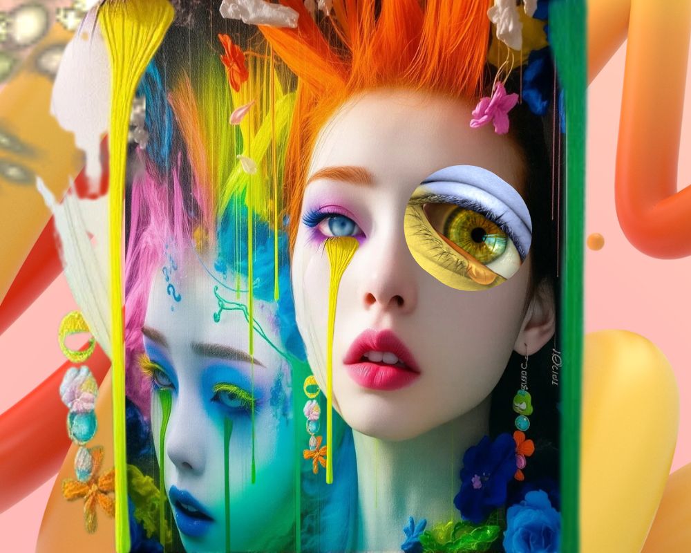 For my current mixed media project, I retrieved a lovely abstract image depicting two females who are shedding colorful tears. Since the image is already colorful, I decided not to add too many additional elements, just enhance the eyes that are the focal point that are shedding tears. Below are my steps in which I utilized one of the stable diffusion programs I prefer, StarryAI.