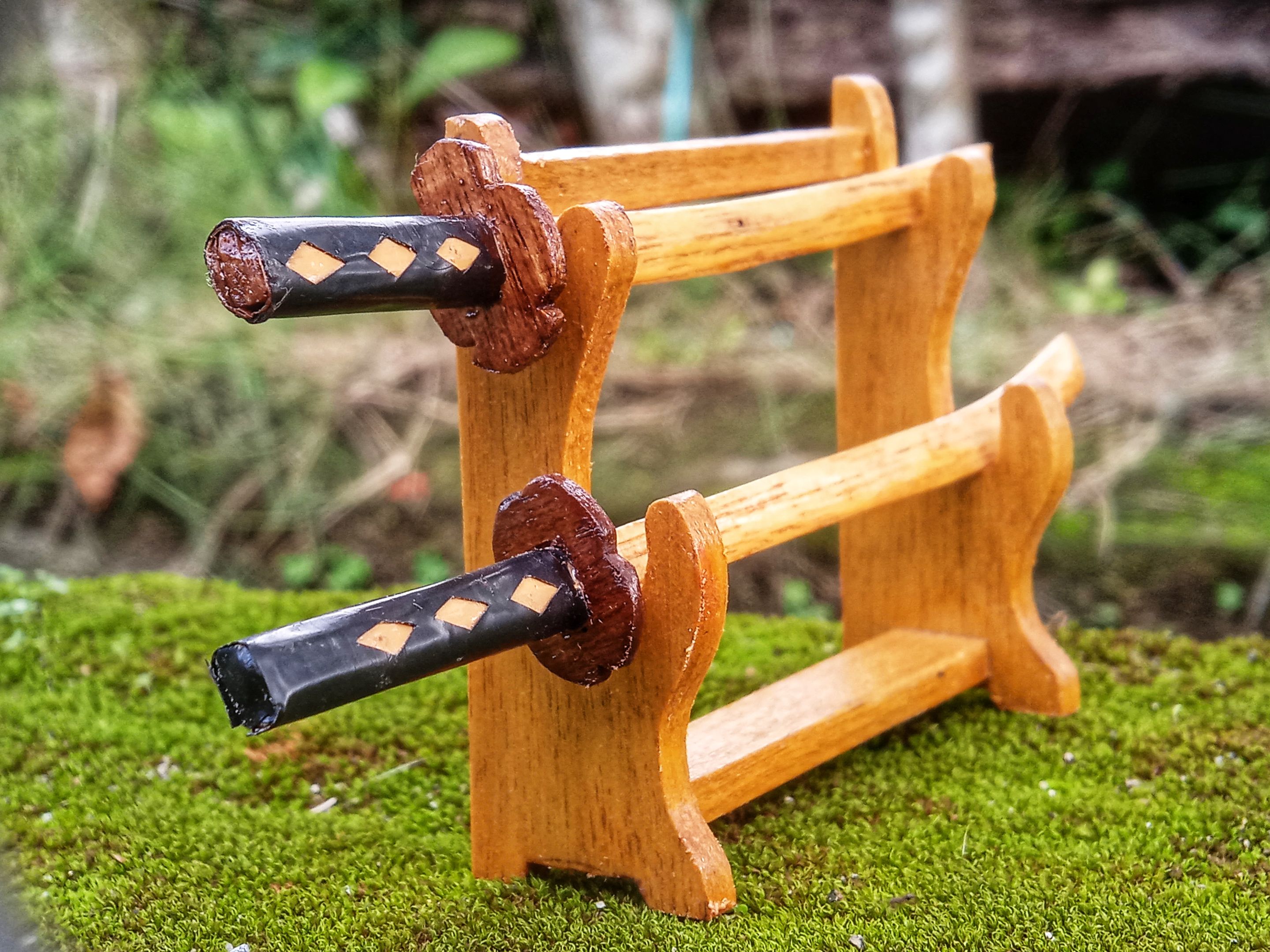 I think the topic I chose is very suitable for me because I am a wood hobbyist so I took the initiative to make a #sword from #wood, so I used the leftover wood in my workshop, but I didn't make it with the size of a real sword I just made #miniature of #samurai #katana which is the original weapon of the bamboo curtain country or Japan, and also the #stand for the sword.
