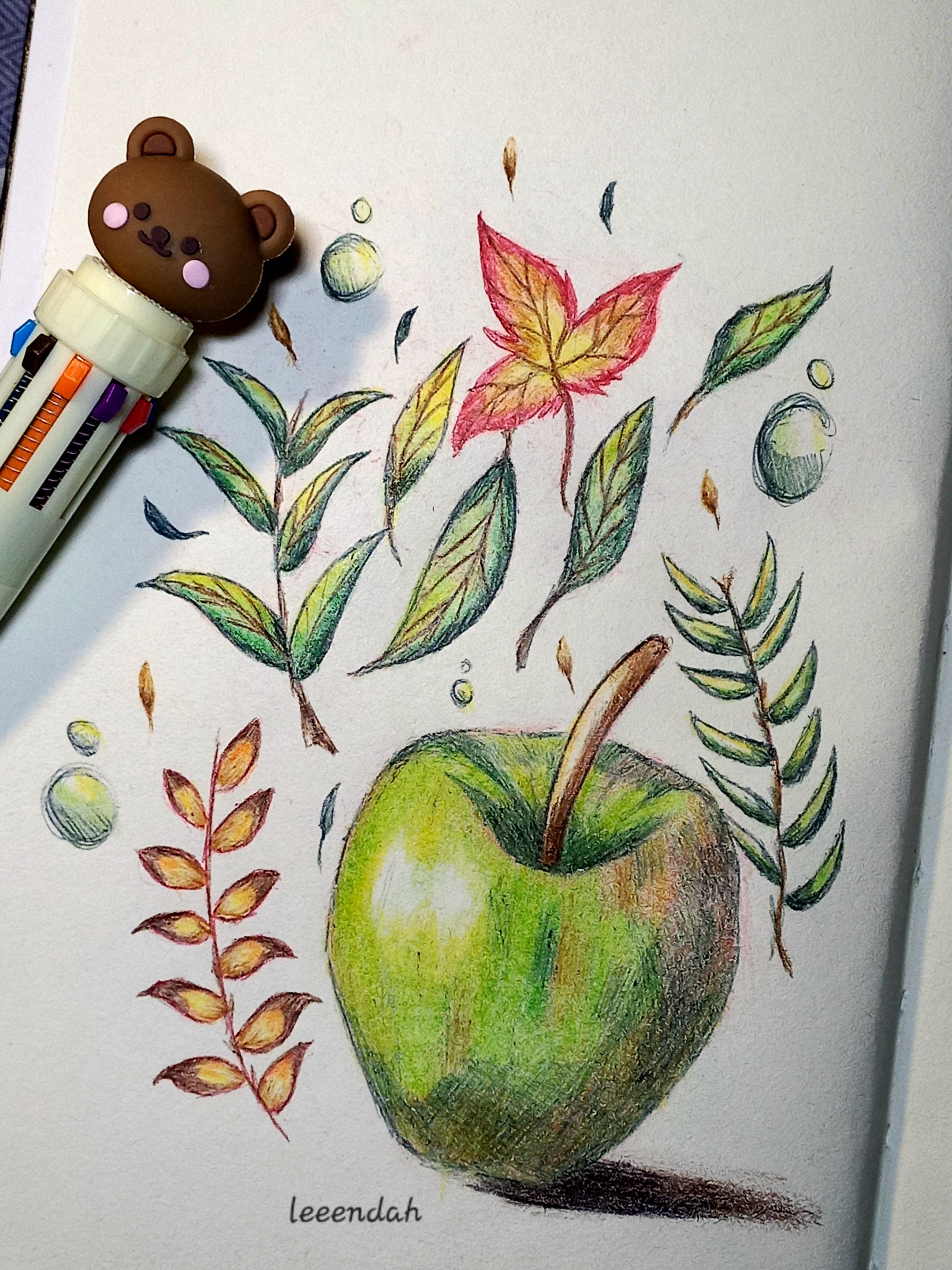 I got three multicoloured pens last month and totally forgot about them, they've been sitting on my desk with my other coloured pencils and I really can't explain why I've never tried to use them. I saw lots of videos about them so I decided to buy them since they're quite cheap, each of these pens have 10 colours, some colours look good on paper, some are not very pigmented while others look different from what I expected which is why I paired them with my coloured pencils to get this result. I'll definitely give it another try.....