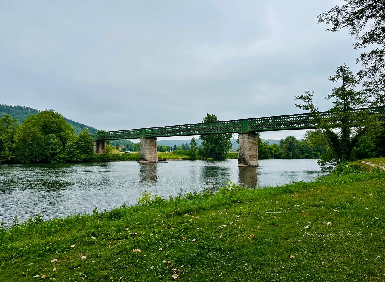 We wander over the lock and its footbridge, walls. On the other side of the river we take a look at the village again. So beautiful.