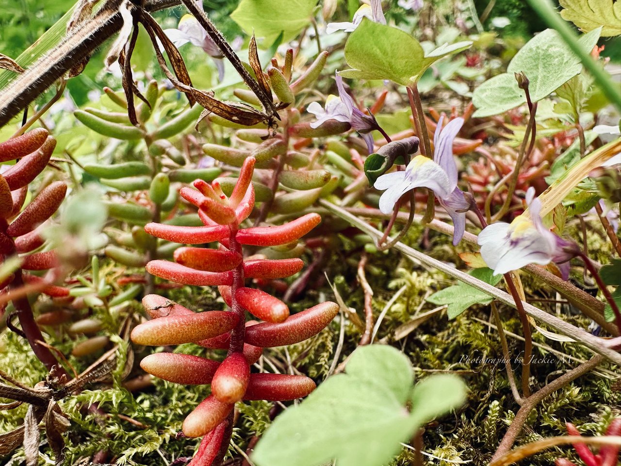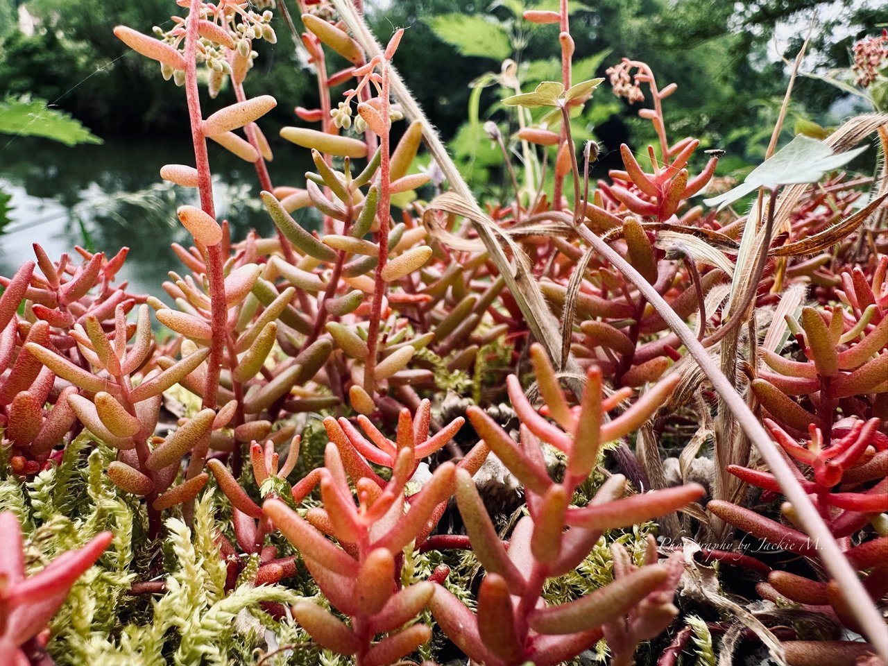 On this little wall I see all different kinds of vegetation. I go and capture a few. The red colour of this succulent like plant is stunning.