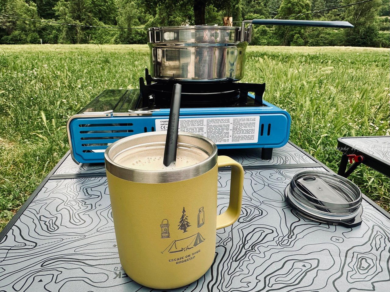 Once back at the campground. We make a cappuccino and rest a bit after our long walk.