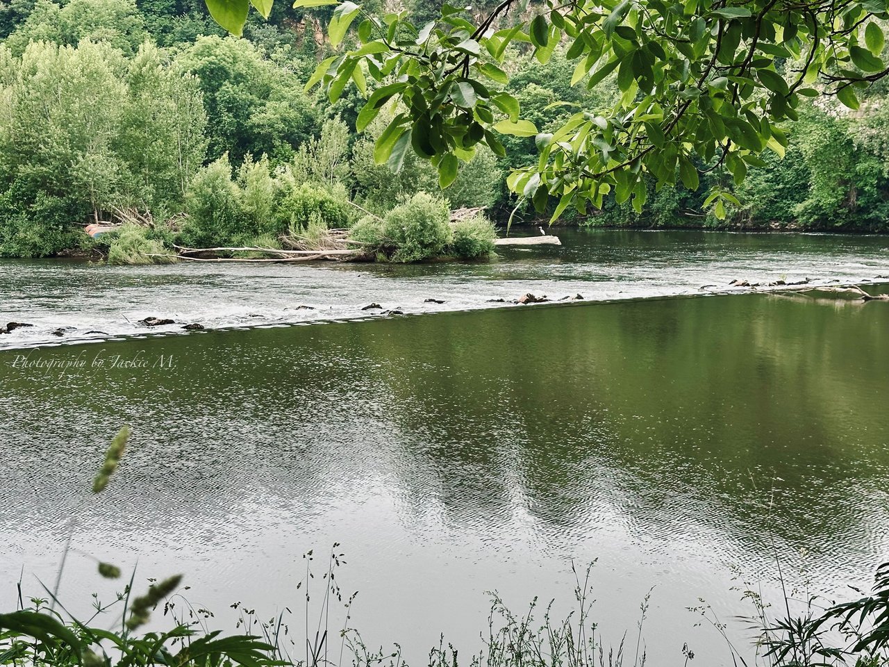 There is a walking path along the river, overgrown but it was still visible to me going from the back side of the campgrounds towards it.