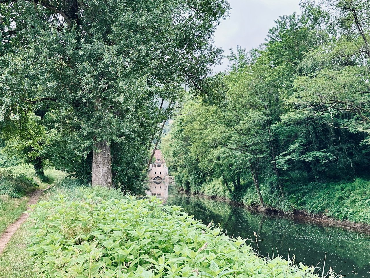 As the path narrows we are still following the river Lot, we see in the distance a building. Maybe we will walk by.