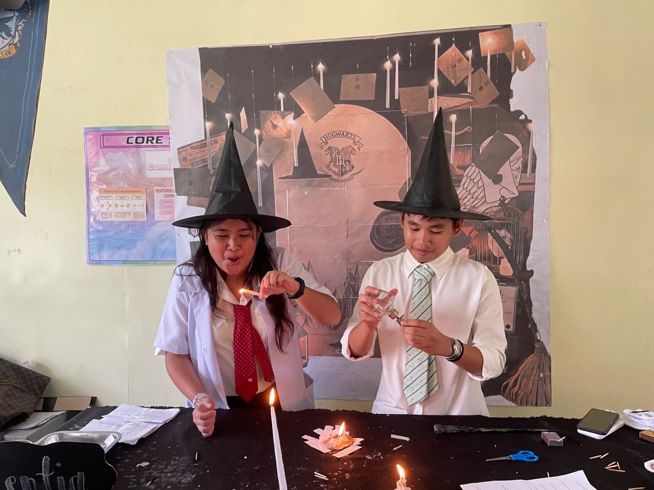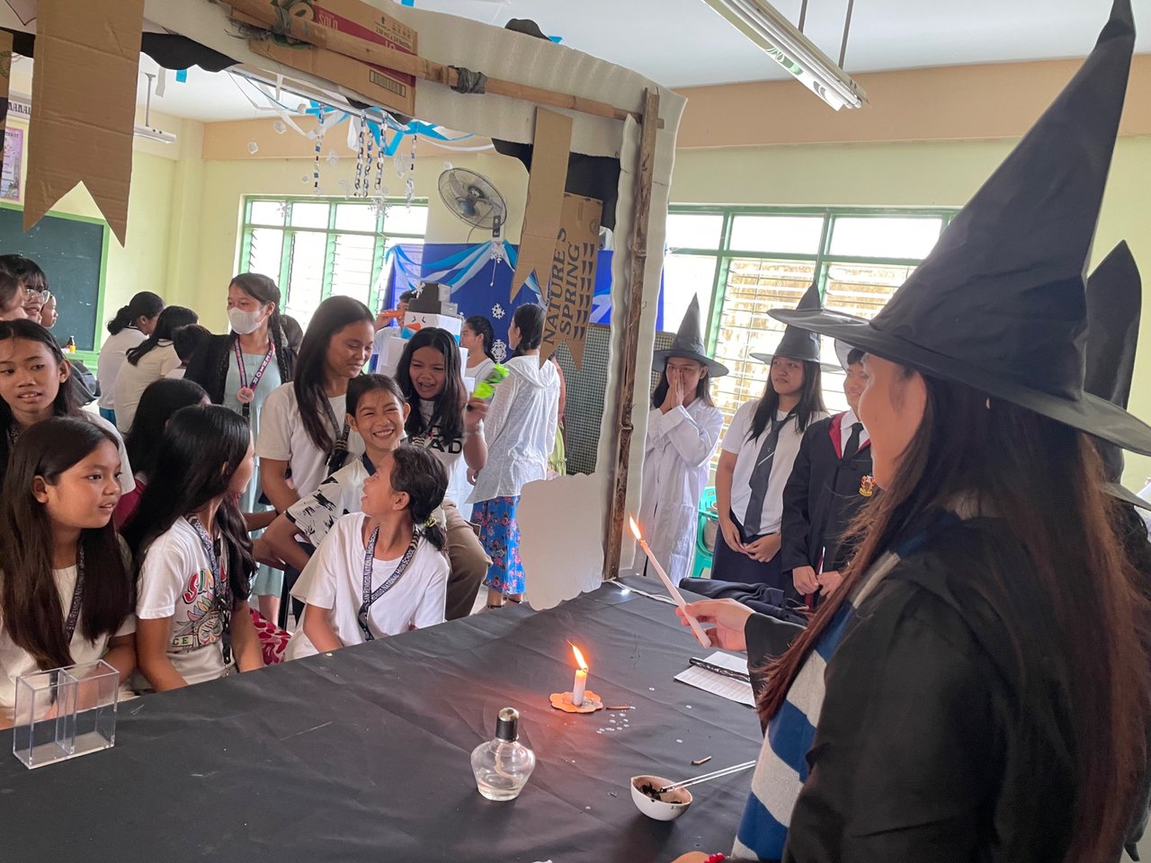September 24,2025—now it’s the day that all of us STEM students have been waiting for! The theme for our group is Harry Potter or simply Witches or Wizards!! Each member of the group was paired (Grade 11 students had to be paired with Grade 12 students), and then divided into four groups since we had to be separated. There were 4 rooms, and each room had 4 stations. That’s why our expenses were quite big because we had to prepare many booths.