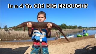 In this episode, our four year old son "Doc" decided that his time had come. He was really excited about taking advantage of his first opportunity to try to get one, but that excitement quickly ran out when he pulled the toothy creature next to his kayak. Thankfully, with some encouragement from his father, he was able to fight through his fear and succeed in this quest. Enjoy the show!