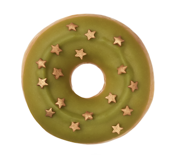 This ring donut was a beautiful shade of green and the gold stars made this look lux. The donut didn't really taste of vanilla as described. It tasted just like a normal ringed donut. It didn't even taste like an original glazed. It just seemed like a sweet donut but without the oomph of the OG and there was definitely no vanilla flavour.