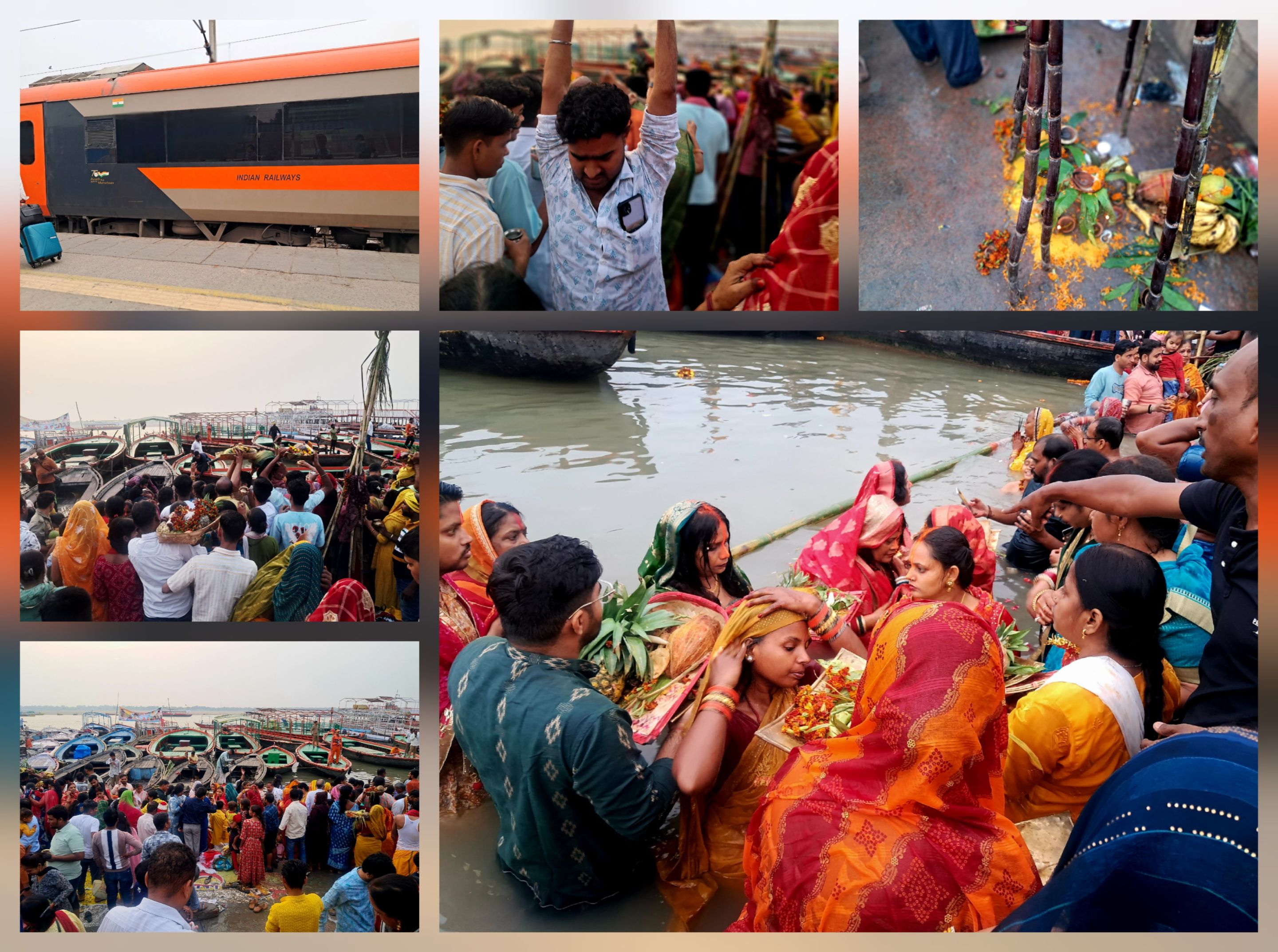 Chathh festival is quite a popular Indian festival celebrated in the state of Uttar Pradesh , Bihar , Jharkhand and parts of Bengal. Gradually, the festival is getting popular in another state. The festival is dedicated to the sun god, Surya, and Chhathi Maiya, honoring the sun as the source of life and energy. Devotees observe strict fasting, including abstaining from drinking water for extended periods, and stand in water to perform rituals, symbolizing surrender and inner cleansing. As part of rituals, the devotees have to offer "argh to the rising Sun and this makes the Varanasi Ghats a much crowded places.
