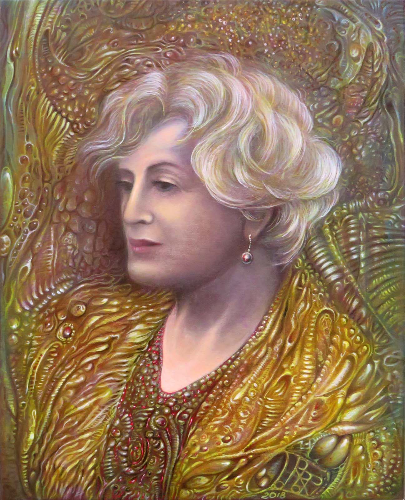 It started with a charcoal and ink drawing on canvas, continuing with highlights and glazes, highlighting white in between layers.