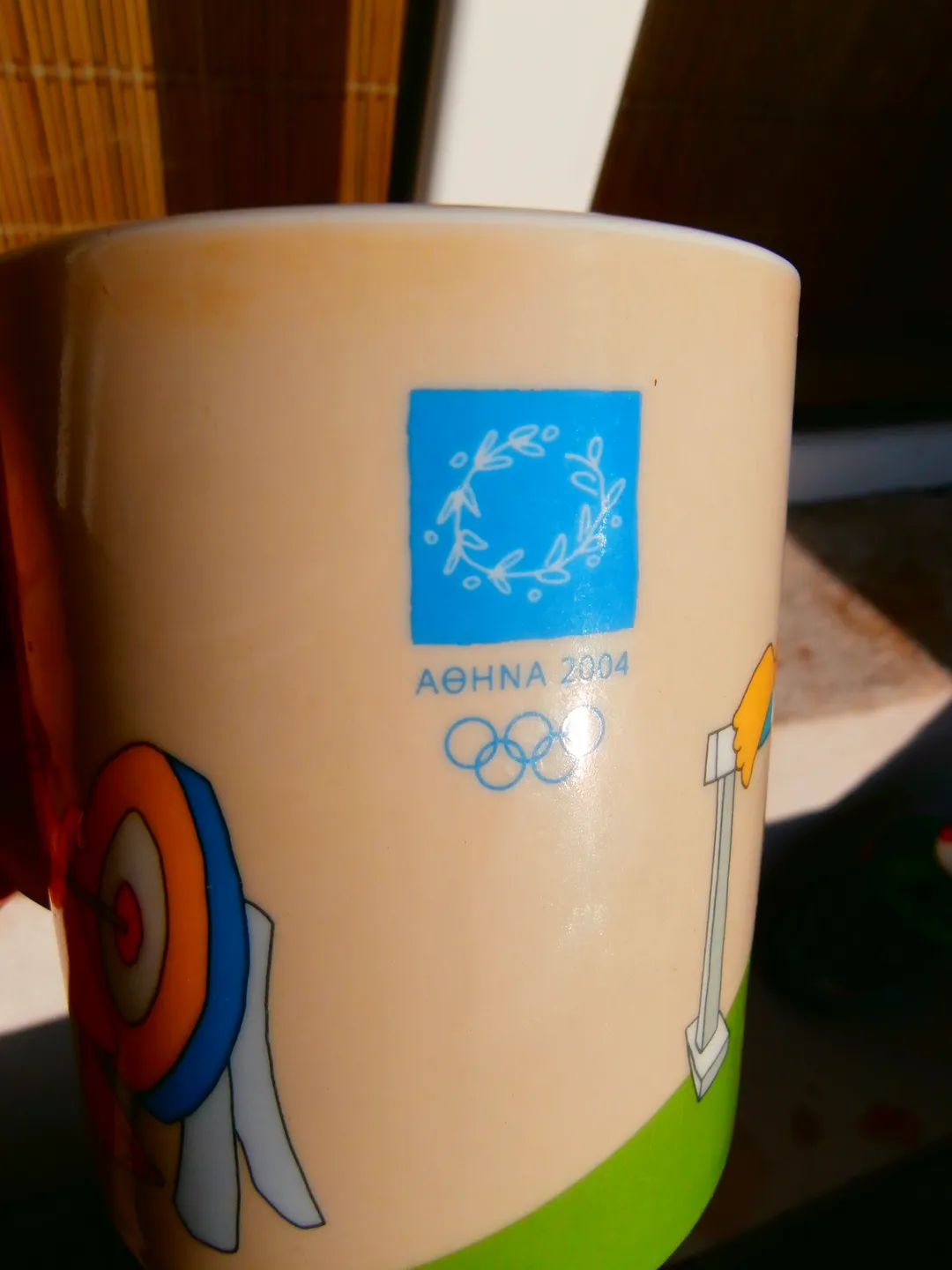 This a mug from the official merch of the Olympics 2004 in Athens, Greece.