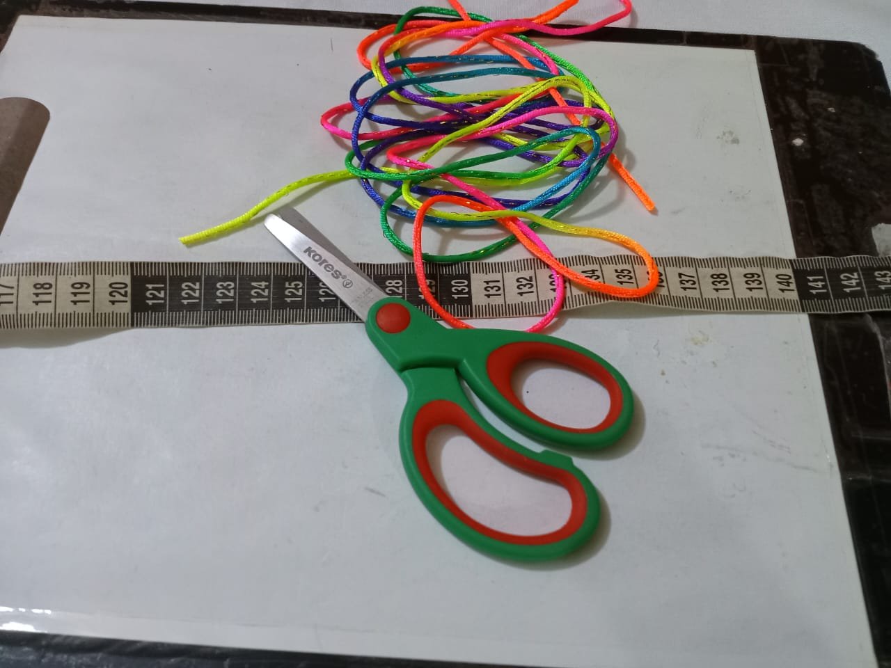 To begin this beautiful piece of jewelry, we start by cutting a 40 cm strand of thread, which we will use as the base for our bracelet.