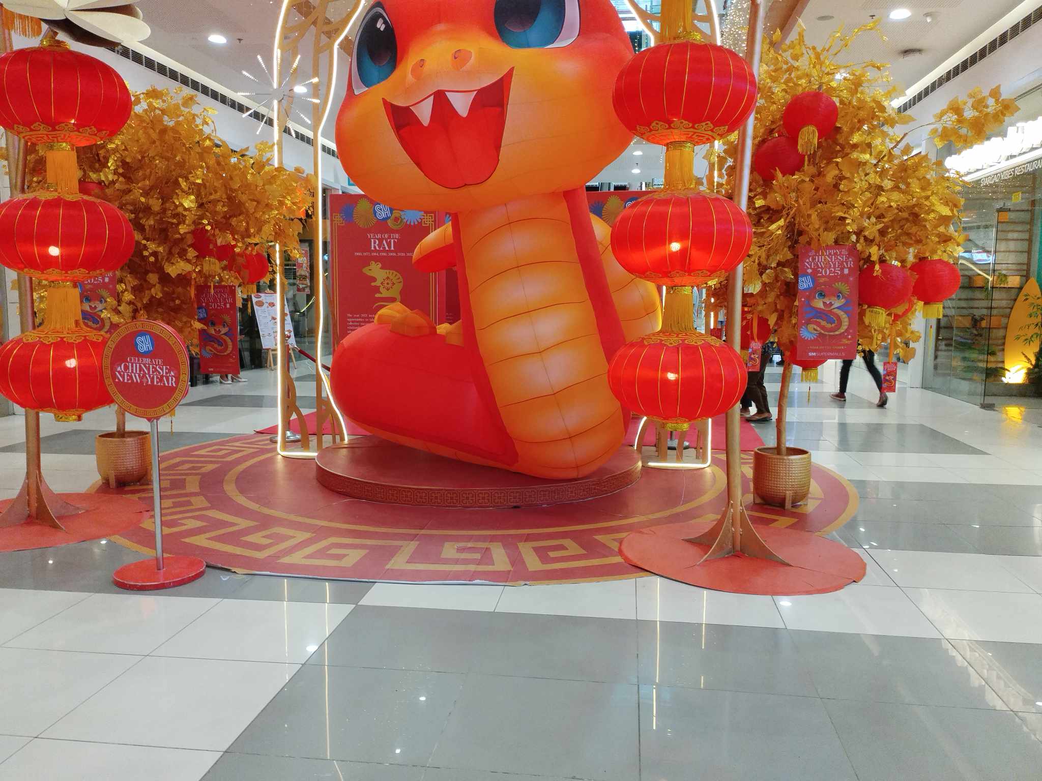 After that satisfying meal, We took a stroll around and were immediately greeted by the vibrant energy of the Chinese New Year decorations! 🎊 The mall was filled with glowing red lanterns, golden trees, and intricate displays celebrating the Year of the Snake 🐍.