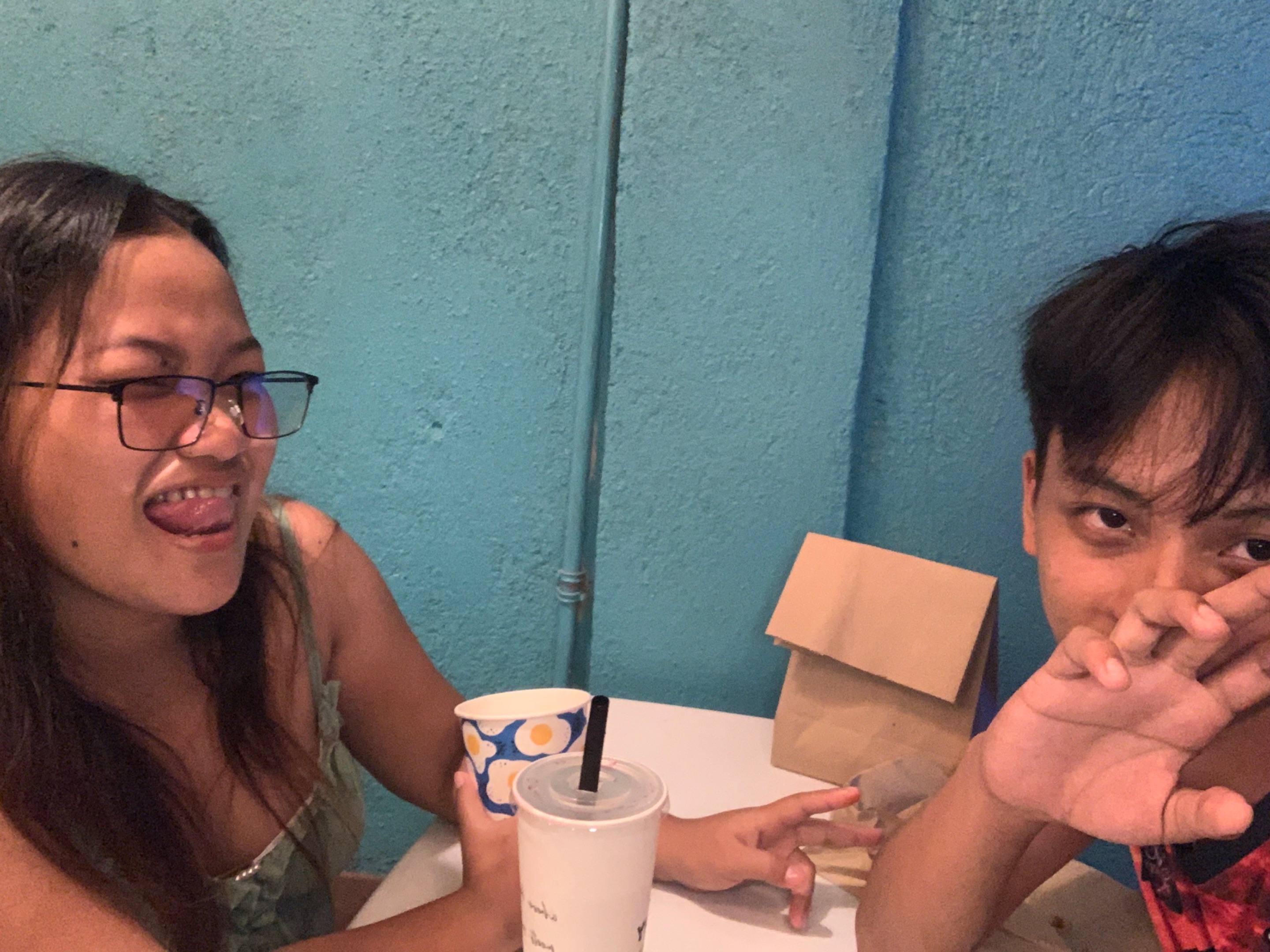 So while he's playing with my cousins, my auntie and I start to shake the avocado. After a few minutes, we call my boyfriend and also my cousinbecause we're already done making the avocado, so after that, we drink, and we go to my house because he needs to rest because he needs that.